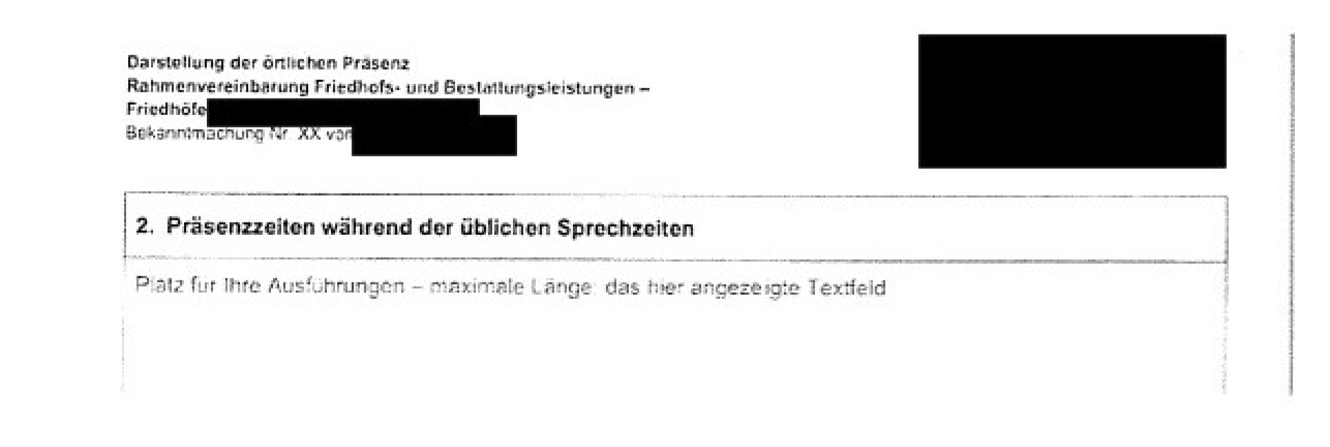 In den Vergabeunterlagen findet sich u.a. folgendes Formblatt zur örtlichen Präsenz, welches die Bieter in Rahmen der Angebotslegung ausfüllen mussten: