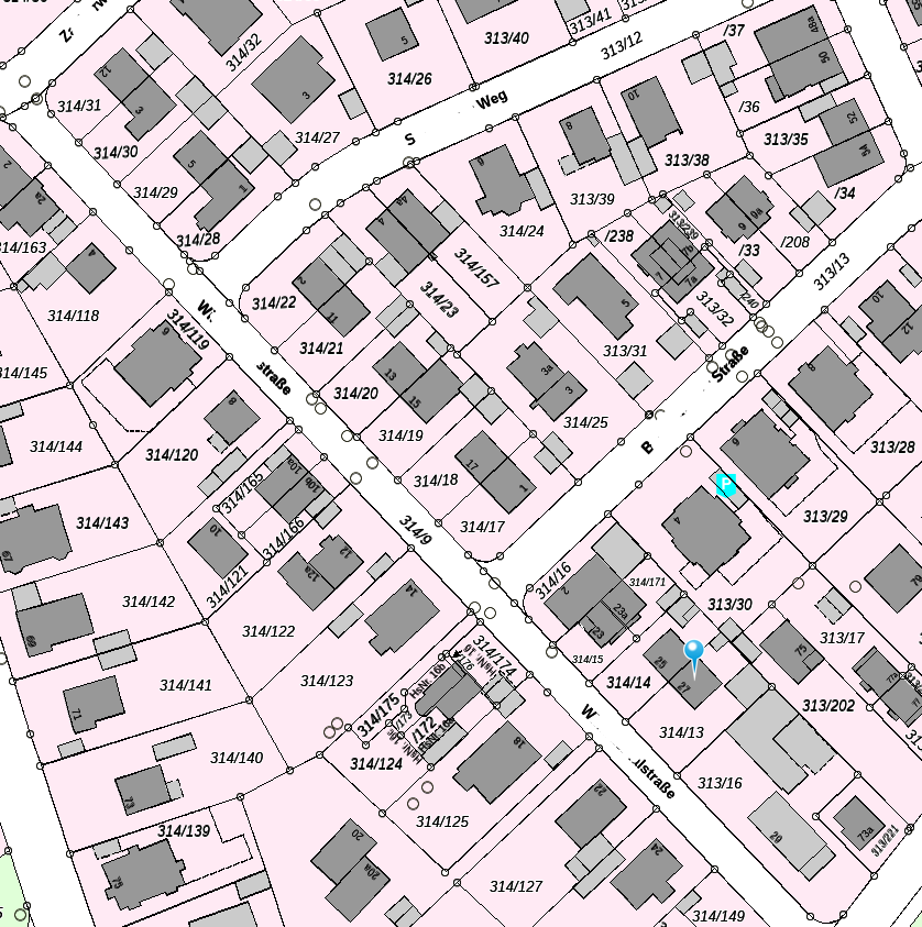 Vergleiche zur baulichen Situation auf dem Baugrundstück folgenden Auszug der topografischen ALKIS Flurkarte aus dem BayernAtlas: