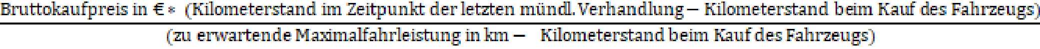 Der von der Klagepartei gezahlte Bruttokaufpreis für das Fahrzeug wird durch die voraussichtliche Restlaufleistung im Erwerbszeitpunkt geteilt und dieser Wert wird mit den gefahrenen Kilometern multipliziert.