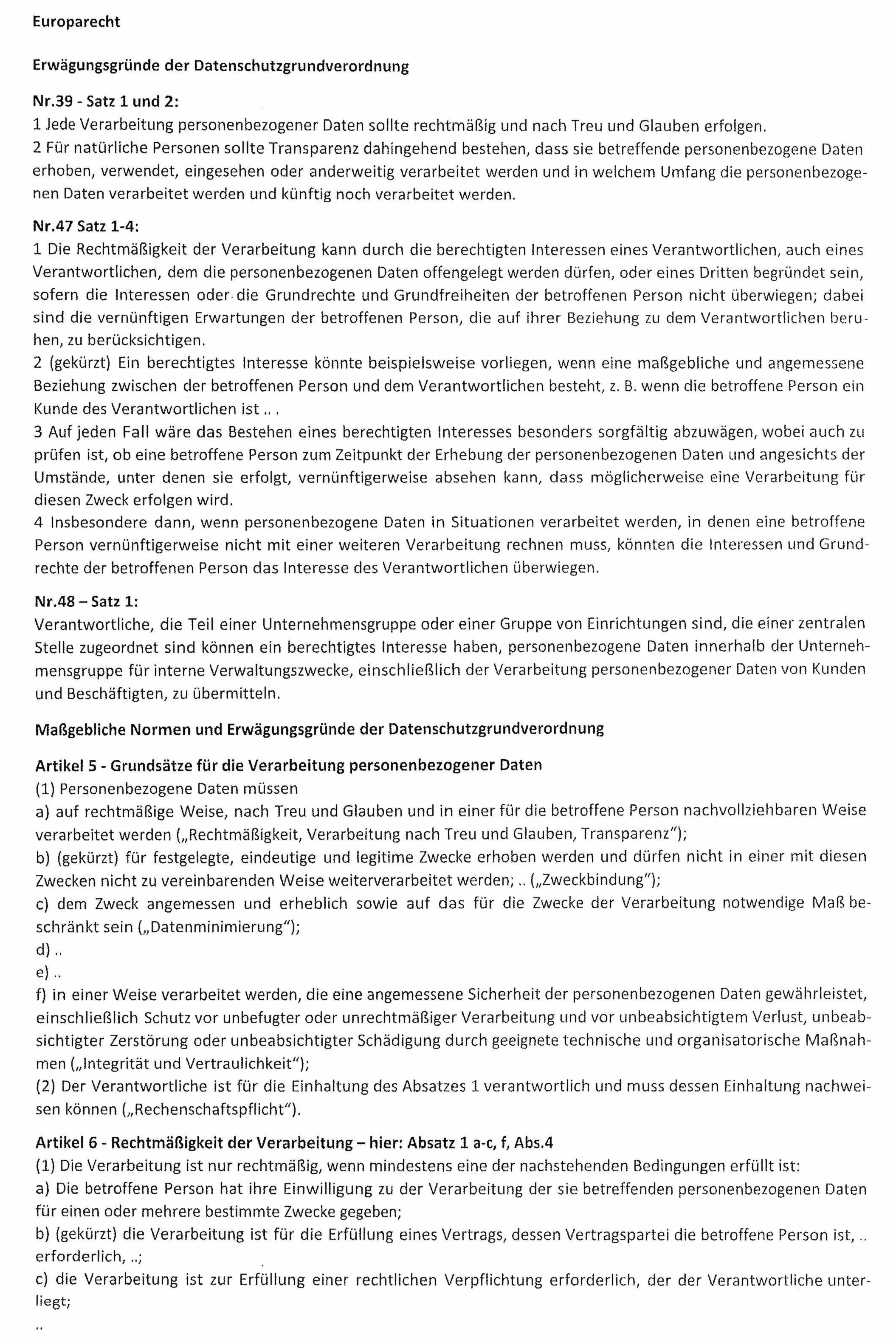 Fortgeführt wird damit eine vor Erlass der Datenschutzgrundverordnung begonnene höchstrichterliche Rechtsprechung. In die Erwägungen des Gerichts flossen folgende Gesichtspunkte ein:
