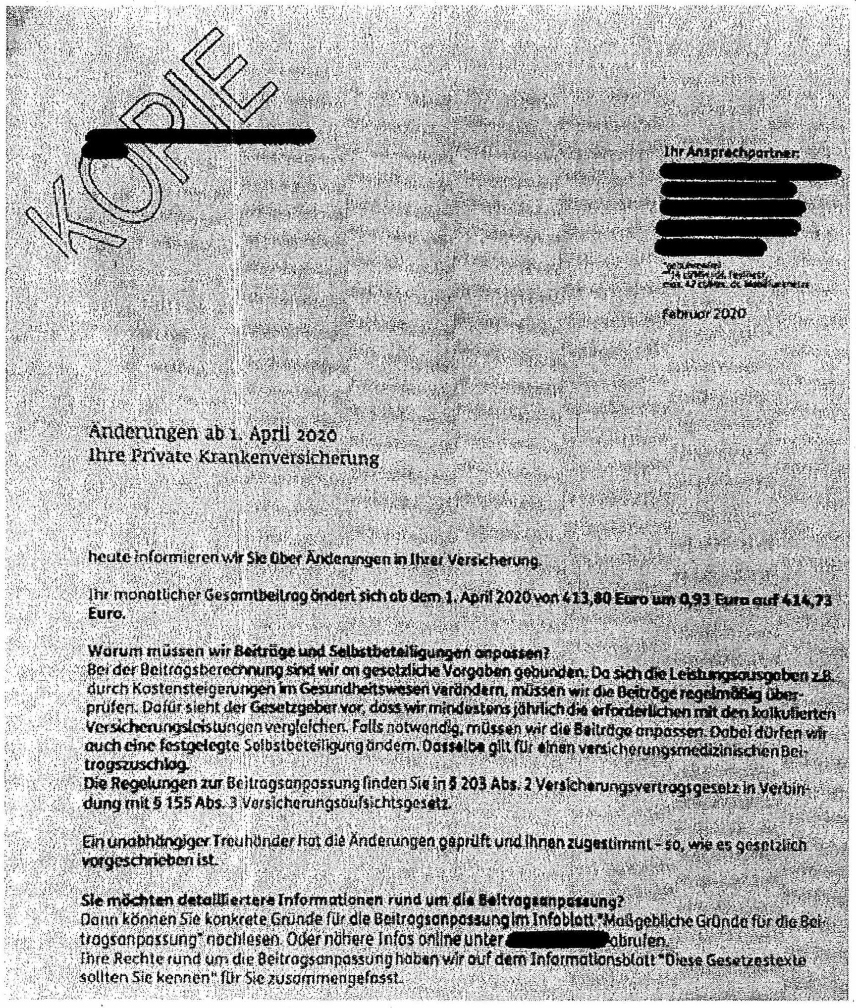 2. Anders zu beurteilen ist dies für das Erhöhungsverlangen, welches tatsächlich eine Verminderung des Beitrags darstellt, für den 01.04.2020. Hier vermag das Gericht die Unwirksamkeit des Änderungsverlangens nicht festzustellen, weil die entsprechenden Unterlagen nicht vorliegen.