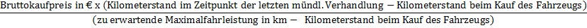 Vorliegend somit (64.805,70 €) x (128.509 km – 21.766 km): (300.000 km – 21.766 km) = 24.862,36 €.