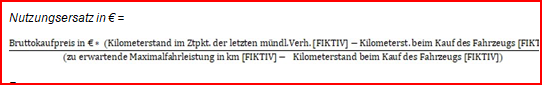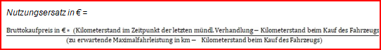 Der von der Klagepartei gezahlte Bruttokaufpreis für das Fahrzeug wird durch die voraussichtliche Restlaufleistung im Erwerbszeitpunkt geteilt und dieser Wert wird mit den gefahrenen Kilometern multipliziert.