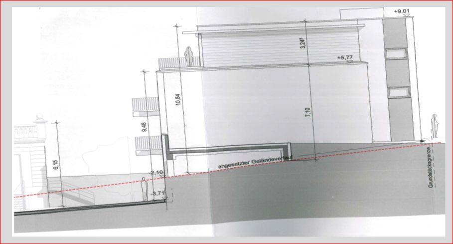 - 9. Antrag auf Genehmigung einer Abweichung zu Art. 6 Abs. 3: Abstandsflächen dürfen sich nicht überdecken Die Abstandsfläche der Aufkantung der Terrasse im 2. OG [Grünkorrektur statt DG] des neuen Gebäudes zum bestehenden Gebäude S., überdecken sich auf 40 cm.