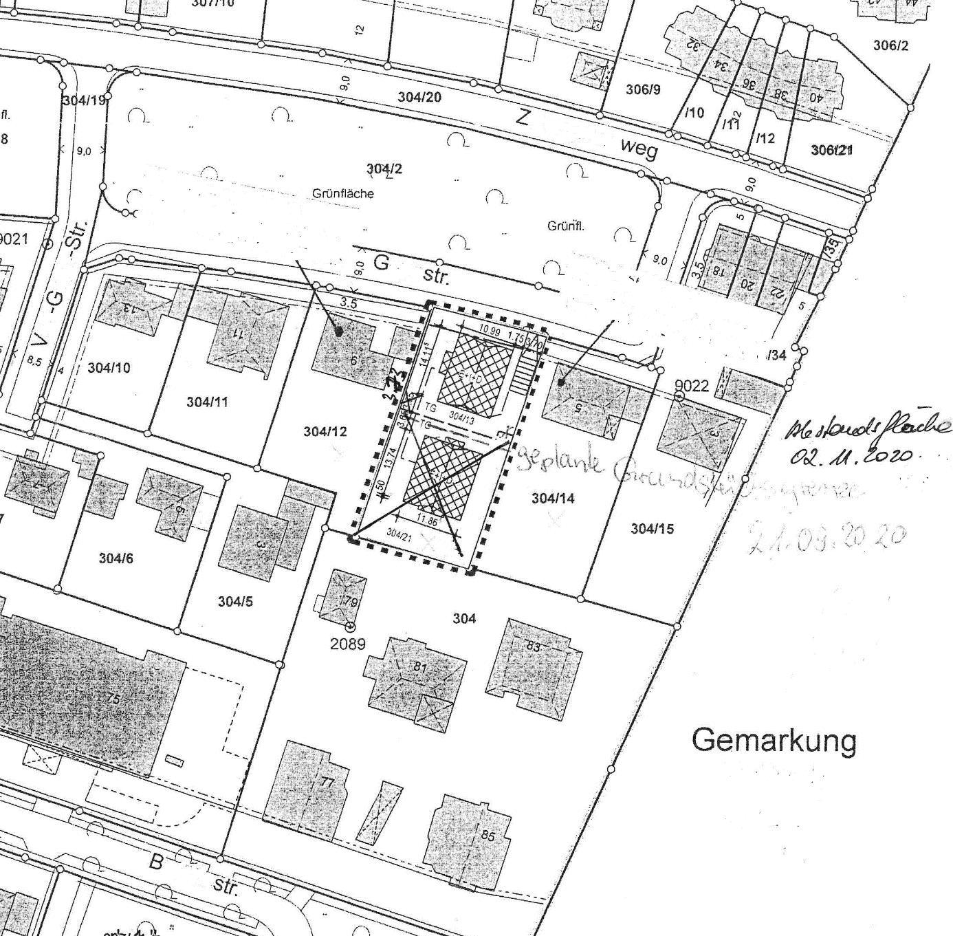 Vor Baubeginn ist der Fortschreibungsnachweis über die neu einzumessende Grenze zwischen den Grundstücken FlNr. … und … entsprechend der Beantragung vom 22.10.2020 vorzulegen.