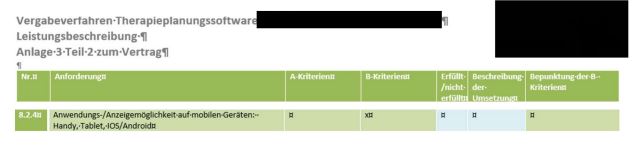 In der Leistungsbeschreibung wird die Anforderung Nr. 8.2.4 „Anwendungs- / Anzeigemöglichkeit auf mobilen Geräten: Handy, Tablet, IOS / Android“ eindeutig als B-Kriterium festgelegt.
