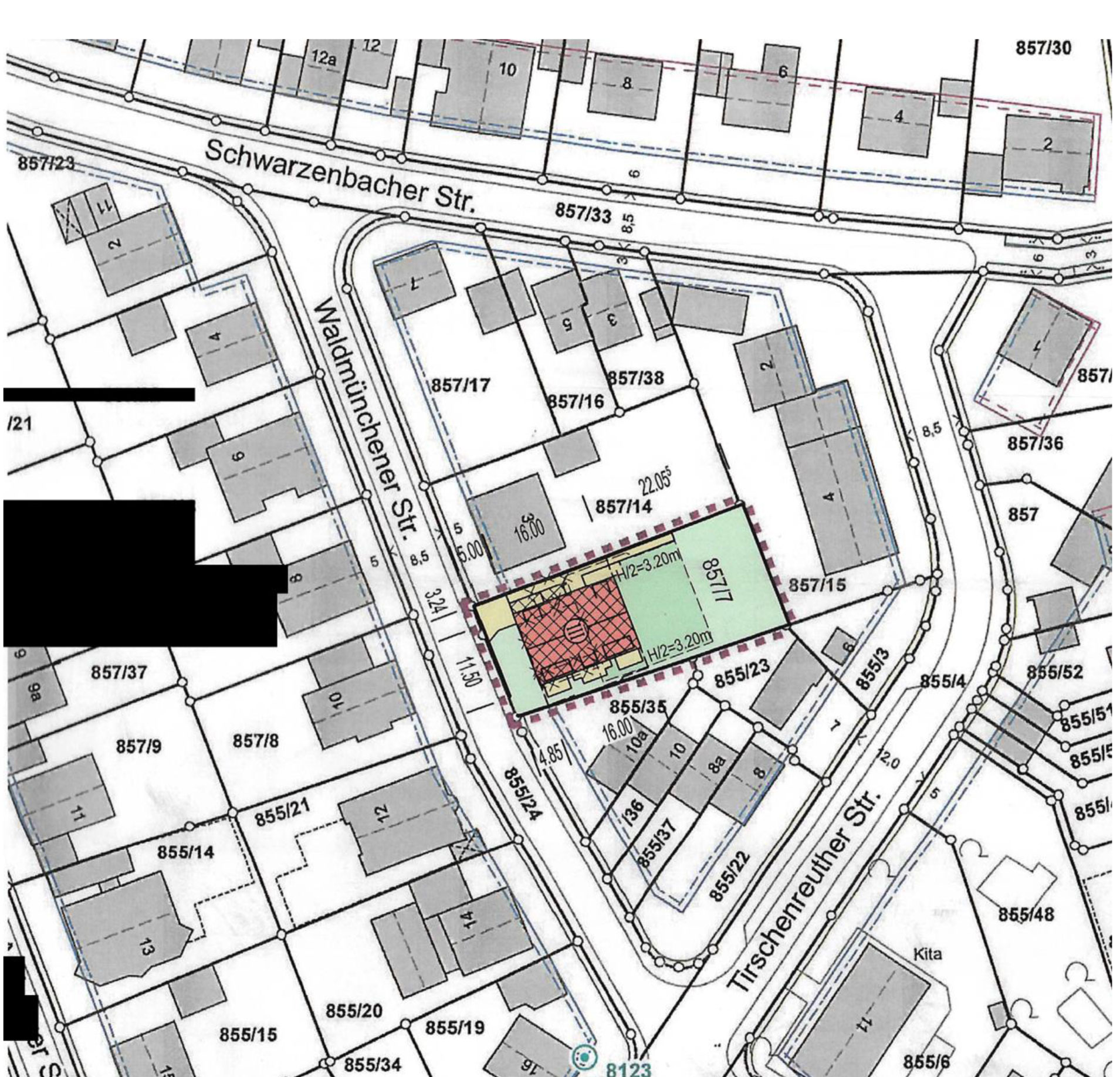 Vgl. zur Lage der Grundstücke und ihrer Bebauung anliegenden Lageplan, der eine Darstellung des Vorhabens enthält (nach dem Einscannen möglicherweise nicht mehr maßstabsgerecht):