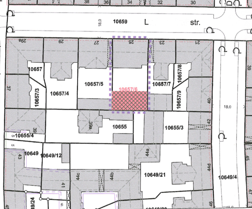 Das Baugrundstück ist derzeit mit einem mehrgeschossigen Vordergebäude bebaut, das Bestandteil einer geschlossenen Blockrandbebauung bildet. Mittels einfachen, übergeleiteten Baulinienplans ist entlang L. straße eine vordere Baulinie festgesetzt. Weitere bauplanungsrechtliche Festsetzungen bestehen nicht.