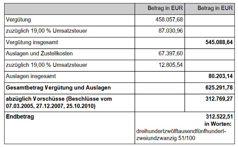 2. Der Endbetrag in Höhe von 312.522,51 EUR ist durch den jetzigen Insolvenzverwalter Dr. W… R… der Insolvenzmasse zu entnehmen und für die unbekannten Rechtsnachfolger des vormaligen Insolvenzverwalters Dr. B… K… gemäß § 372 S. 2 BGB zu hinterlegen.