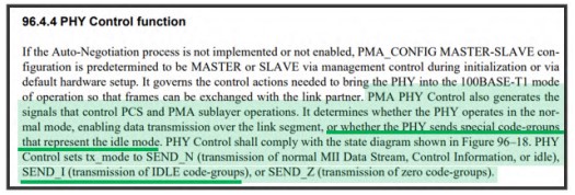 wobei die lokale PHY, die ausgelegt ist zum Abbilden des 3Bit-Paketstroms von MII-Daten auf einen oder mehrere ternäre Bitströme zur Kommunikation an eine ferne PHY über eine oder mehrere verdrillte Leitungen eine Konfiguration hat zum, während eines IDLE-Zustands: