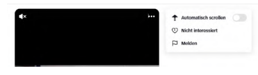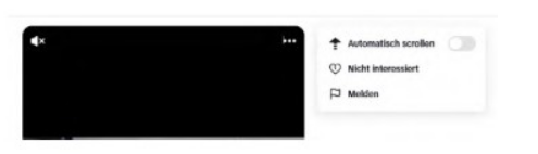 Bewegen Nutzer ihren Cursor über den gerade geöffneten Beitrag, erscheinen in der rechten oberen Ecke drei Punkte. Ein Klick auf die drei Punkte bewirkt das Erscheinen eines Drop-Down-Menüs, das die Auswahlmöglichkeiten „Automatisch scrollen“, „Nicht interessiert“ und „Melden“ bietet, aber keine Möglichkeit enthält, ein nicht personalisiertes Empfehlungssystem zu wählen (s. Anlage K 4). In den Kontoeinstellungen der Webseite gibt es ebenfalls keine dahingehende Einstellmöglichkeit.
