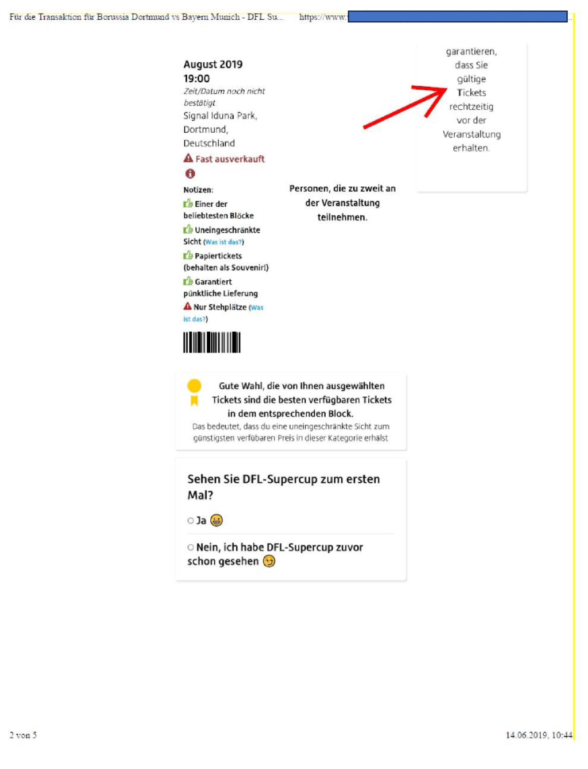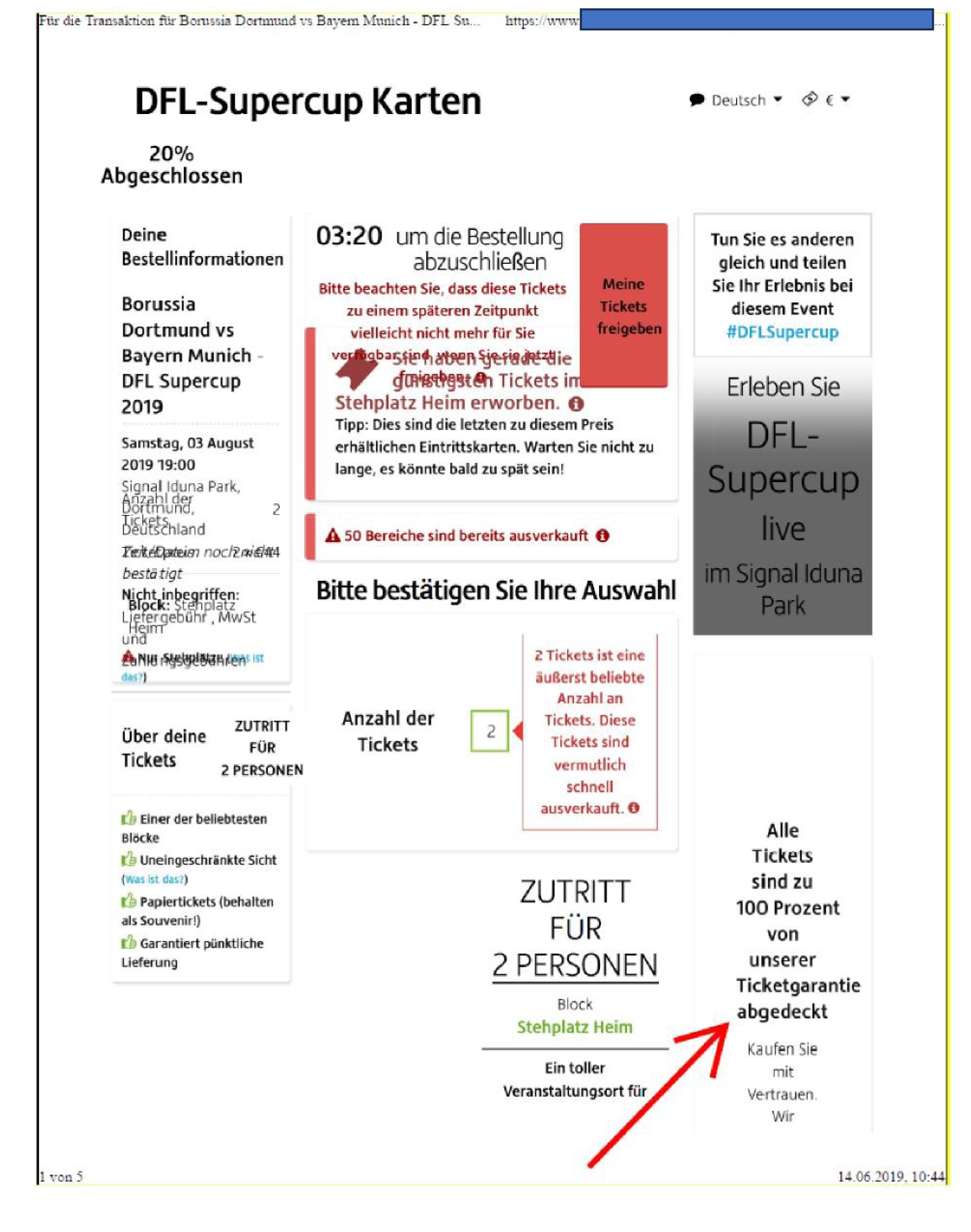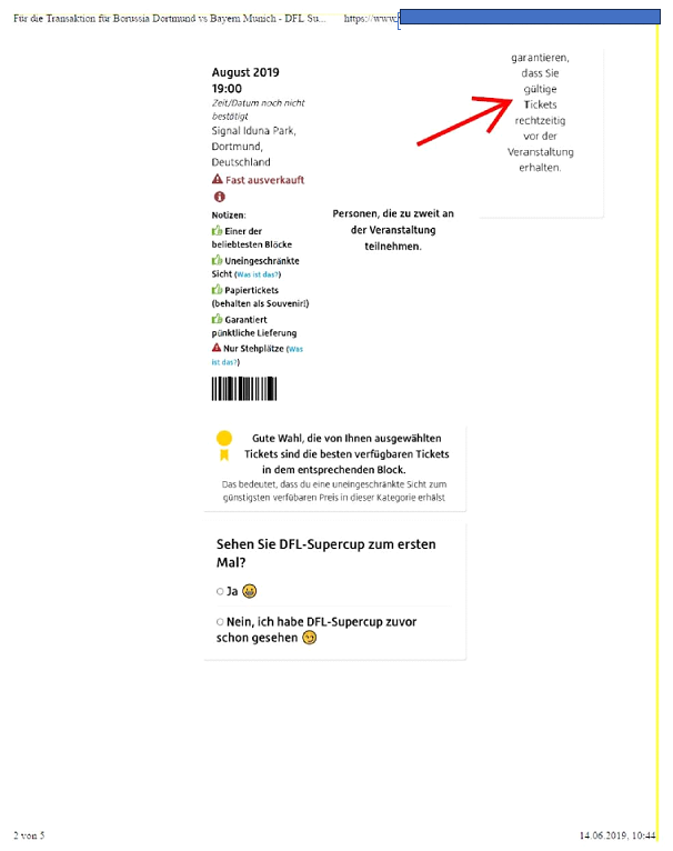 Bei dem DFL-Supercup 2019 am 03.08.2019 trafen die Clubs Borussia Dortmund und FC Bayern aufeinander. Tickets hierfür erwarb der Kläger im Rahmen eines Testkaufs am 14.06.2019 über die Plattform v. .de (Anlage K 16). Hierbei gab die Beklagte mit der Klage angegriffene Garantieversprechen ab (wiedergegeben im LGU, Seiten 10). Die AGB der Beklagten beziehen sich unter Punkt 1.3 explizit auf die v. -Garantie (Wortlaut der AGB wiedergegeben in LGU, Seite 11). Diese AGB waren im Rahmen des Testkaufs unten auf der Website, unterhalb des c-Vermerks (Anlage K 17, Seite 4, ganz unten), mithin mehrere „Scrolls“ von den Garantieversprechen entfernt, verlinkt.