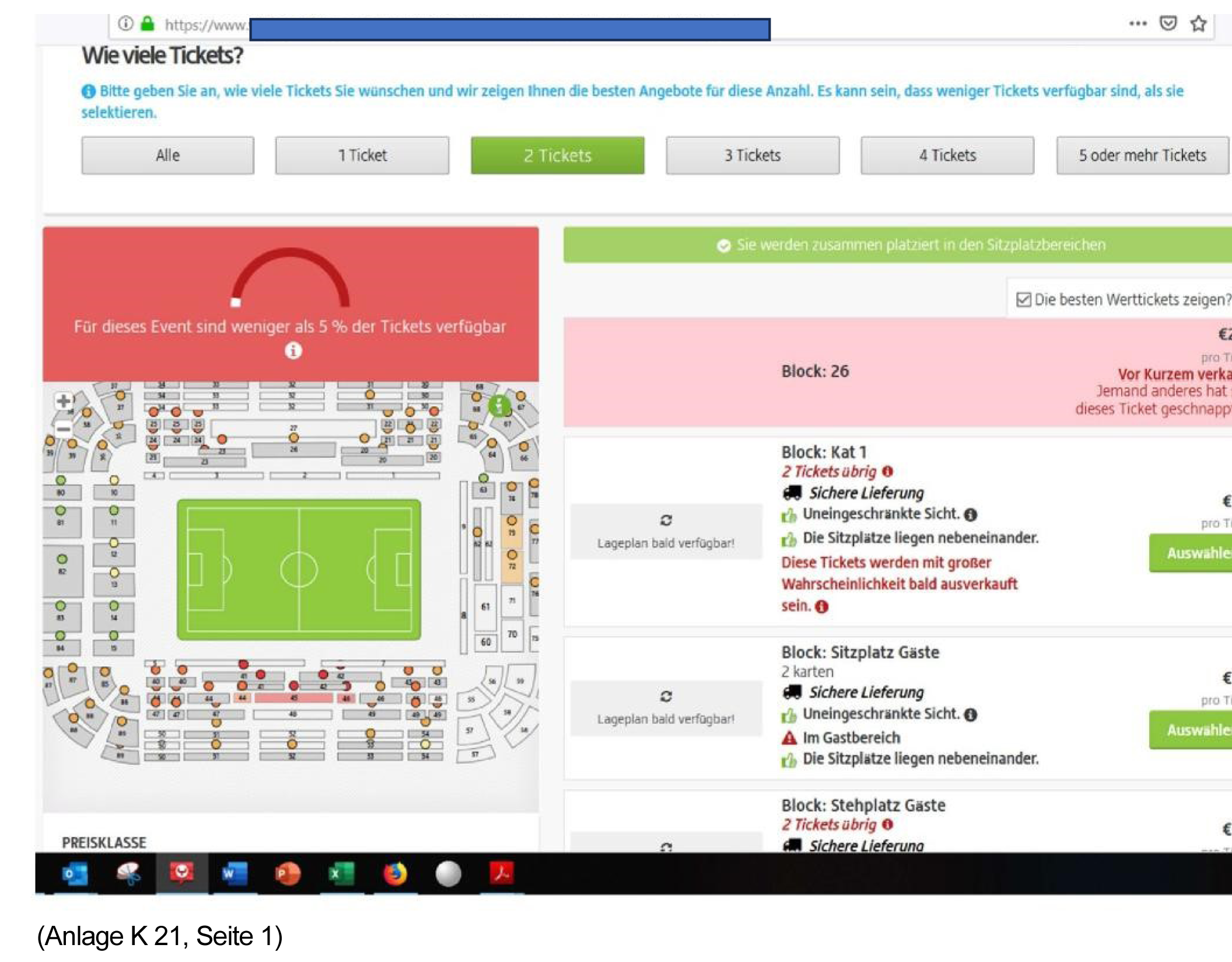 auf der Internetseite www.v. .de den Verkauf von Tickets für Veranstaltungen des Klägers zu ermöglichen, bevor für die jeweilige Veranstaltung bei dem Kläger und/oder bei von dem Kläger autorisierten Stellen Tickets zum Verkauf angeboten werden in Kombination mit den Werbeaussagen „heiß begehrt und vermutlich schon bald ausverkauft“ und/ oder „fast ausverkauft“ und/ oder „weniger als 5% der Tickets verfügbar“ und/oder „173 Bereiche sind bereits ausverkauft“, wenn dies geschieht wie in Anlage K 21 Seite 1, K 22 Seite 1 und K 22a Seite 1,