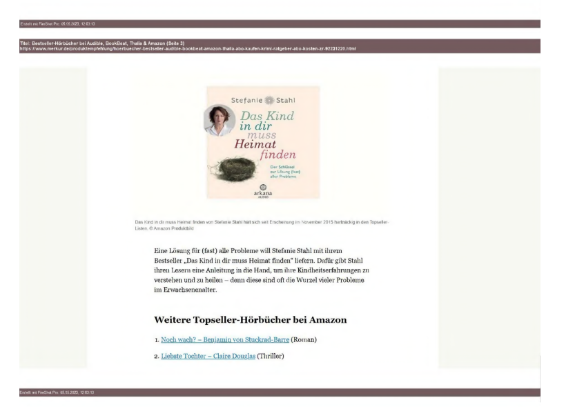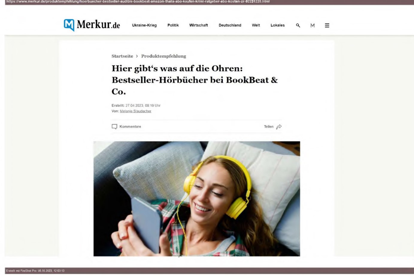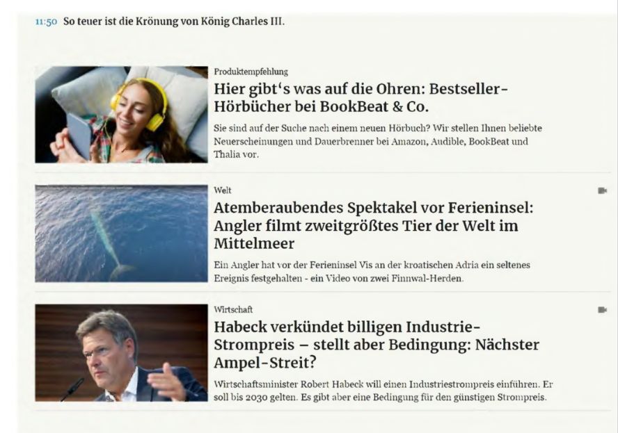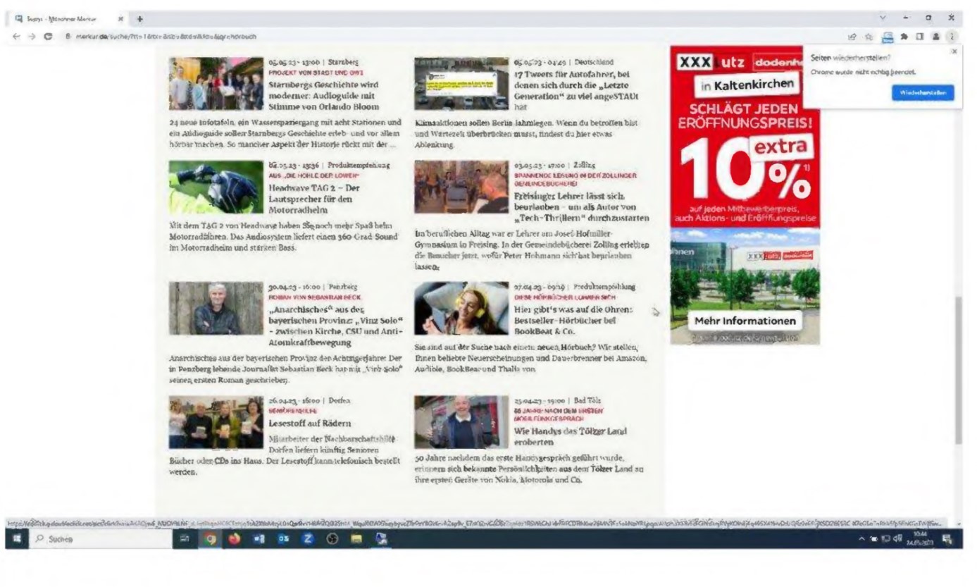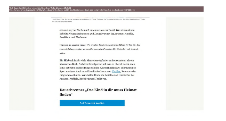 Am 05.05.2024 wiesen sie auf mehreren Seiten unter www.m... de im Wege einer Vorschau auf den Beitrag „Hier gibt’s was auf die Ohren: Beststeller-Hörbücher bei B... & Co“ hin, wie aus Anlage K3 (Startseite) und K5 (Seite bei Nutzung der Suchfunktion) ersichtlich.