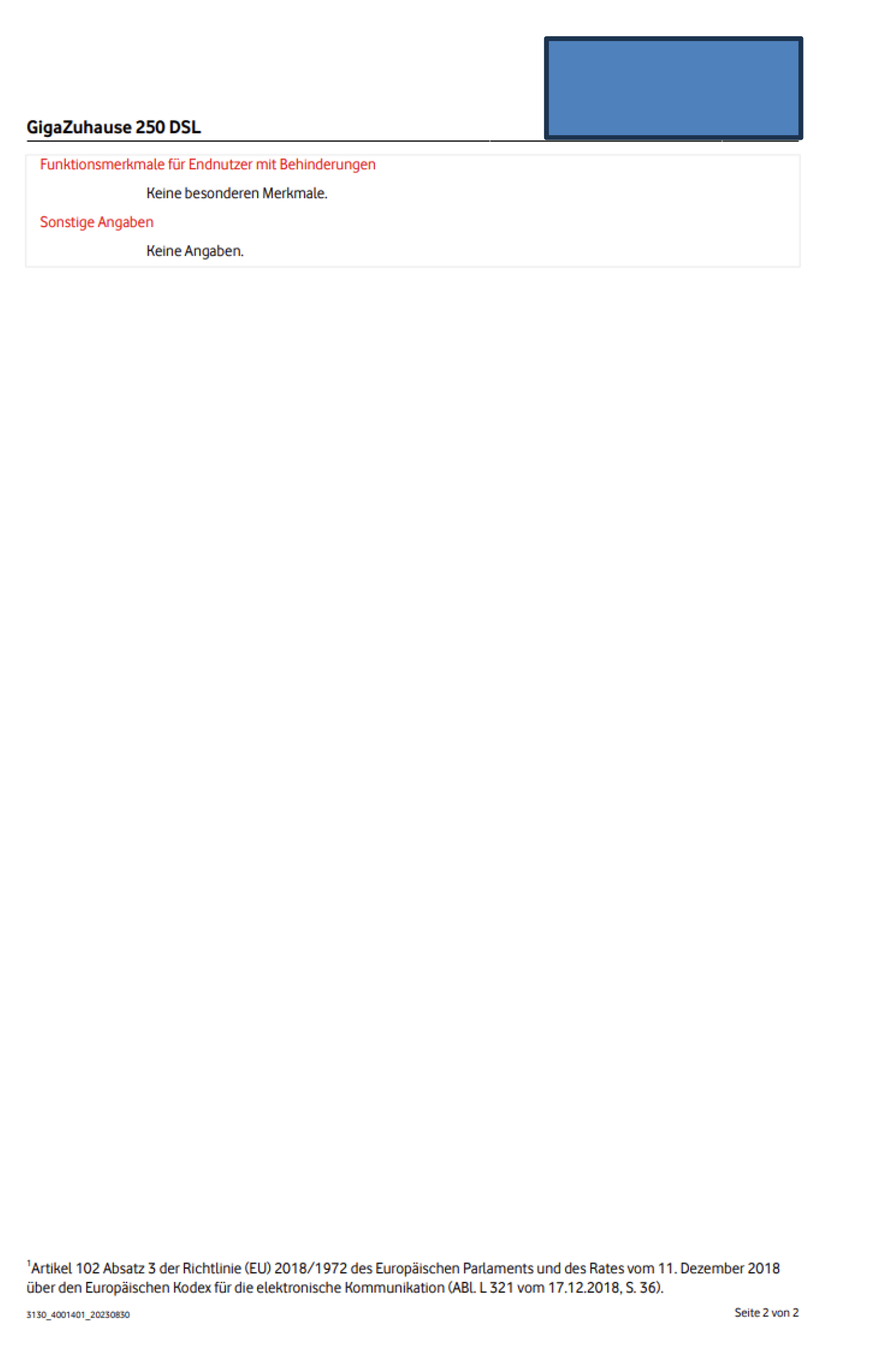 bb) Die Beklagte hat die Informationen betreffend „GigaTV“ und „GigaZuhause 250 Kabel“ zwar in einem Dokument, aber nicht in einer Vertragszusammenfassung gemäß dem Muster der Durchführungsverordnung (EU) 2019/2243 zur Verfügung gestellt. Stattdessen hat sie für beide Dienste je eine Vertragszusammenfassung bereitgestellt. Das entspricht nicht den Vorgaben der §§ 54 Abs. 3, 66 Abs. 1 TKG.