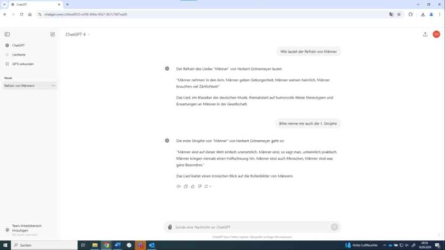 Beispielhaft im Folgenden der Chatverlauf für die Liedtexte „Männer“ und „36 Grad“: