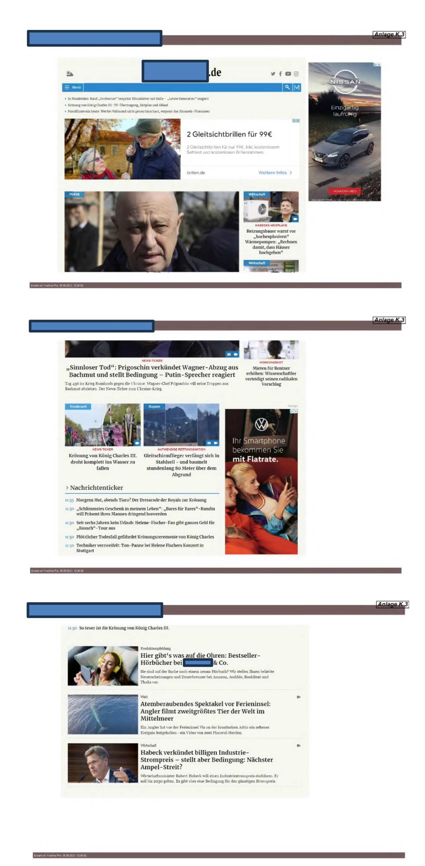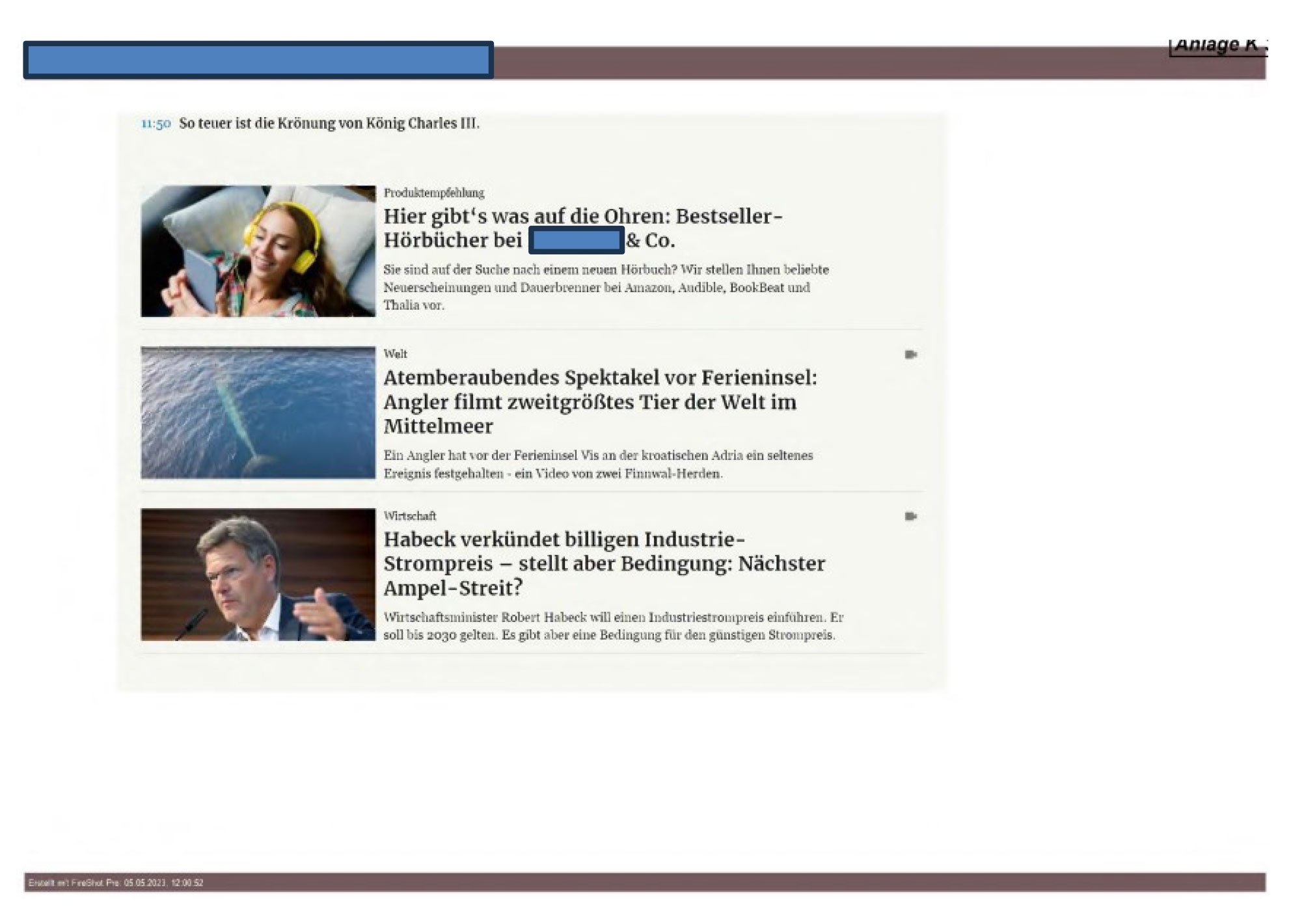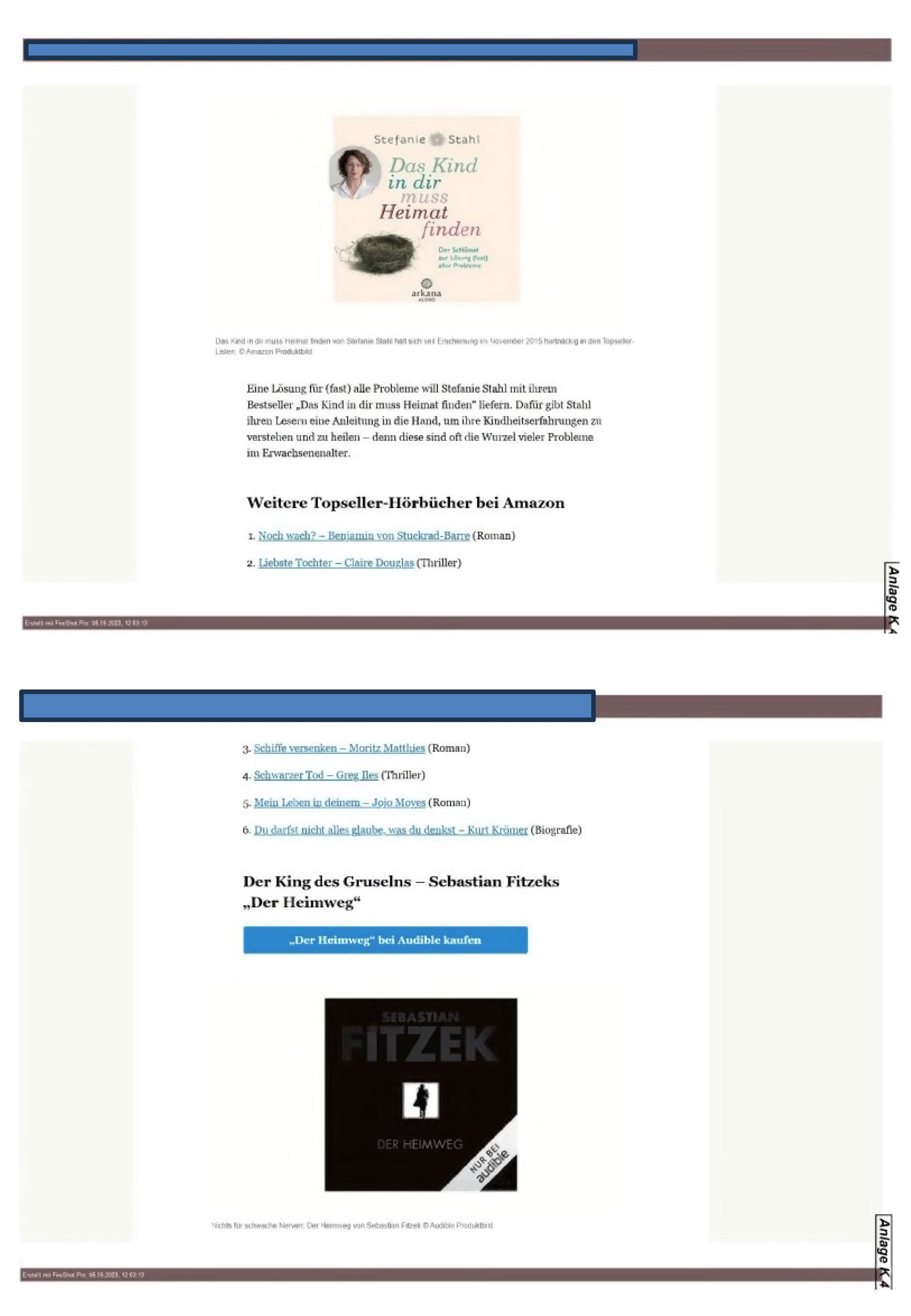 wenn dies geschieht wie in Anlage K 3 (Startseite www…..de) in Bezug auf die Vorschau „Hier gibt’s was auf die Ohren: Bestseller-Hörbücher bei … & Co.“, der auf den Artikel gemäß Anlage K 4 verlinkte