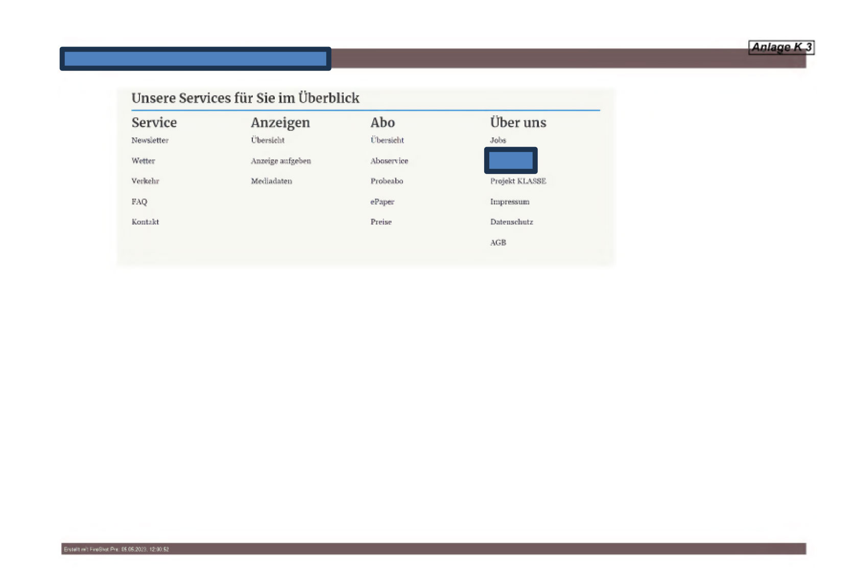 Die Startseite (Anlage K 3) stellt sich auszugsweise wie folgt dar: