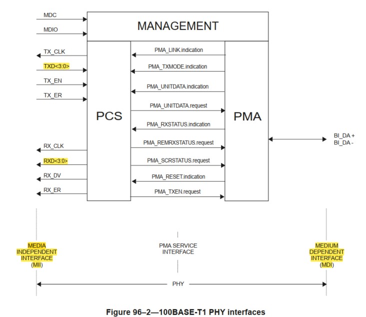 eine lokale PHY [physische Schnittstelle], die ausgelegt ist zum Umwandeln von Media Independent Interface, MII,
