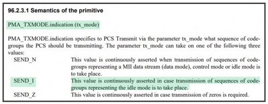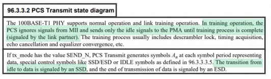 wobei die lokale PHY, die ausgelegt ist zum Abbilden des 3Bit-Paketstroms von MII-Daten auf einen oder mehrere ternäre Bitströme zur Kommunikation an eine ferne PHY über eine oder mehrere verdrillte Leitungen eine Konfiguration hat zum, während eines IDLE-Zustands: