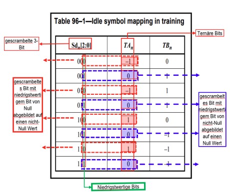 Damit weist die PP6 aber keinerlei Bezug zu einem IDLE-Zustand auf, was Anlass für den Fachmann sein könnte, um dort zu recherchieren, wie die IDLE-Muster auf ternäre Symbole abgebildet werden könnten.